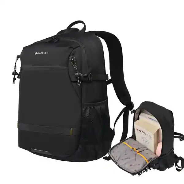 La mochila Hardley de 25 Lts, ultra liviana y de gran calidad, te permite cargar todo lo necesario en el día a día. - Diseño clásico y multifacético para utilizar en oficina, viajes, gimnasio, etc. - Su medida permite llevar como mochila de mano en avión. - Lleva todo en orden: Cuenta con múltiples espacios y compartimientos - Espalda y tirantes acolchados: cómoda de cargar durante trayectos largos, evita dolores e incomodidades - Compartimiento acolchado y reforzado para notebook y Tablet: ¡Diseñada para el viaje! Doble compartimiento acolchado para llevar un computador de hasta 15.6 - Espacios para mantener tus pequeños artículos en orden. - Bolsillo lateral para botella de agua - Con diversos compartimientos más espaciosos para guardar todo lo necesario, ya sea tu ropa para un viaje o tus esenciales del trabajo, esta mochila no te fallará. - Costuras reforzadas con doble costura, doble cierre y hebillas resistentes - Tela Aquashield PU+ 100% impermeable, anti rasguños y respirable ----------------------------------------------------------------------- FICHA TÉCNICA - Cubierta: tela aquashield PU+ de alta densidad y super ligera - Correas: Polipropileno - Capacidad Litros: 34 Lts - Espacio acolchado para Computador 15.6 - Espacio acolchado - Bolsillo trasero secreto para documentos importantes - Tamaño apto para cabina de avión - Acolchado espalda: Espuma PE forrada en malla tipo panal. - Material respirable - Color: Negro - Medidas: 47 cm x 32 cm x 17 cm ----------------------------------------------------------------------- QUE VIENE EN LA CAJA - Mochila Hardley 25 Lt **Hardley® es distribuida en Colombia y Sudamérica exclusivamente por Builder Commerce SAS** ----------------------------------------------------------------------- PREGUNTAS FRECUENTES ¿Es apta para llevar en el avión? ¡Si! Nuestra mochila esta especialmente diseñada para llevar contigo en cabina.