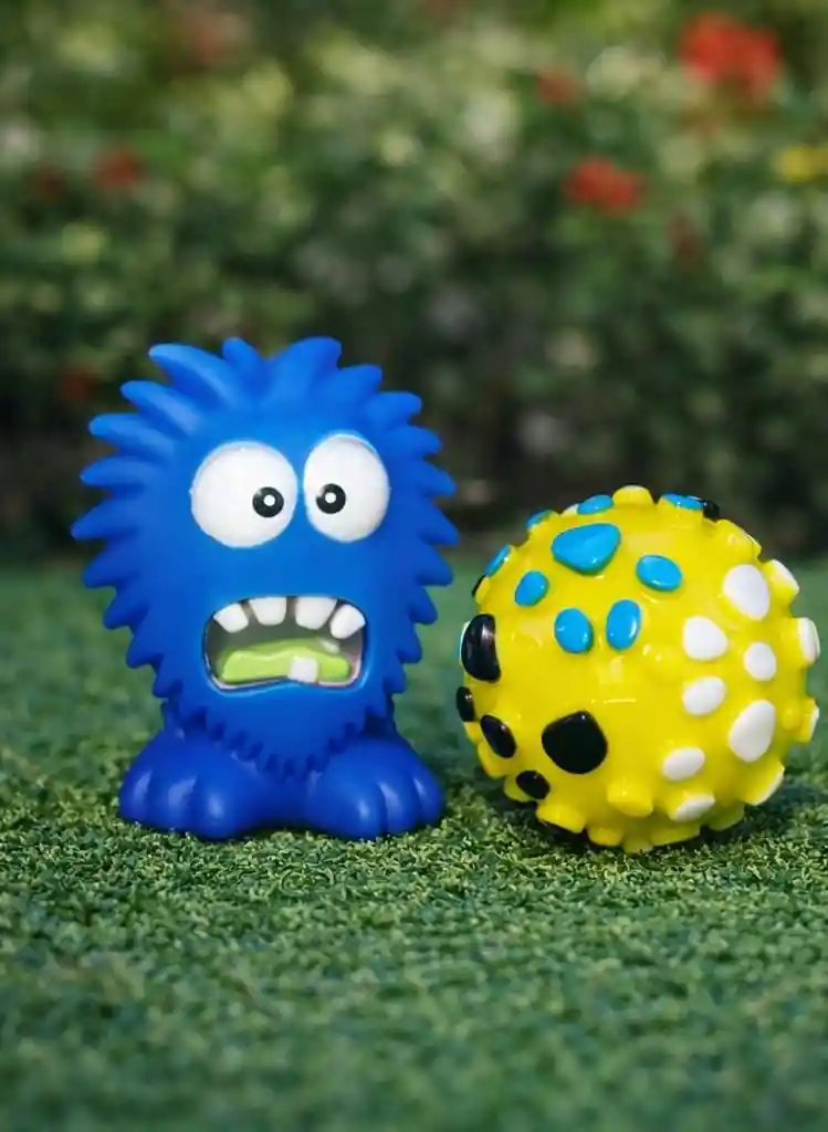 un combo de 2 juguetes para mas diversion que incluye mounstro azul y pelota