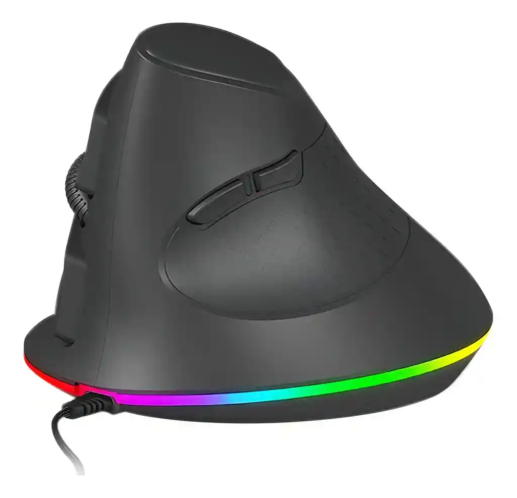 Lo que tienes que saber de este producto Utiliza cable. Cuenta con 7 botones para un mayor control. Con sensor óptico. Resolución de 1080dpi. MOUSE ERGONÓMICO ALÁMBRICO RGB Diseñado para reducir el dolor del síndrome del túnel carpiano, este ratón ergonómico alámbrico es ideal para actividades donde pasas mucho tiempo en la misma posición. Permite descansar el brazo sobre el escritorio y disminuir incomodidades de una mala postura. ADAPTADO A TUS MOVIMIENTOS El sistema de detección de movimiento óptico te permitirá mover el cursor de una manera más precisa y sensible que en los sistemas tradicionales. CONÉCTALO Navega rápidamente gracias a su diseño ergonómico, liviano y conveniente. Conecta el teclado a cualquier puerto USB de tu PC. FUNCIONES Te brinda funciones como desplazarte hacia arriba o abajo gracias a su rueda incluida, además de teclas especiales para clic derecho e izquierdo. RGB Ambienta tu escritorio con luces LED de colores. Controla las luces desde el ratón con dos teclas especiales, donde podrás tener luces crossover o estándar en un solo color. DESTACADOS: Largo cable: 1.40m Compatible: Dispositivos con entradas USB Medidas: 105 x 85 x 88 mm Peso: 120g
