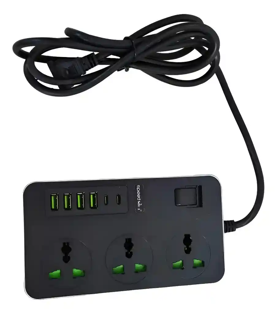 Multitoma Negra Multi-Función PLUS: Prolongue la vida útil de sus dispositivos electrónicos El circuito inteligente con detección de voltaje incorporada detecta y responde a las necesidades de energía de su dispositivo. DESCRIPCIÓN Puerta de seguridad para niños Cada enchufe tiene inserciones de plástico que evitan que los niños se caigan en los agujeros con los dedos u objetos más pequeños y causen peligro de golpes. Toma de corriente UNIVERSAL, los enchufes tienen un buen agarre para sostener todos los dispositivos para evitar que se resbalen y no se aflojarán fácilmente como otras tiras de alimentación de mala calidad. CARACTERÍSTICAS * Diseñada como puerta de seguridad para niños. * Inserciones de plástico para evitar que los niños introduzcan los dedos u objetos pequeños. * Toma de corriente universal para adaptarse a varios tipos de enchufes. * Buen agarre en los enchufes para sostener dispositivos y evitar resbalones. * Construcción resistente para mayor durabilidad. * Fácil instalación sin necesidad de herramientas especiales. * Se adapta a diferentes tipos de puertas y pasillos. * Mecanismo de cierre seguro para mayor protección. * Diseño discreto que se integra con la decoración del hogar. * Cumple con estándares de seguridad para garantizar la protección infantil. MEDIDAS: Alto: 2,5 cm Largo: 18 cm Ancho: 9 cm Peso: 346 g Largo Cable: 2 m QUE INCLUYE LA COMPRA X1 Multitoma Negra Multifunciones
