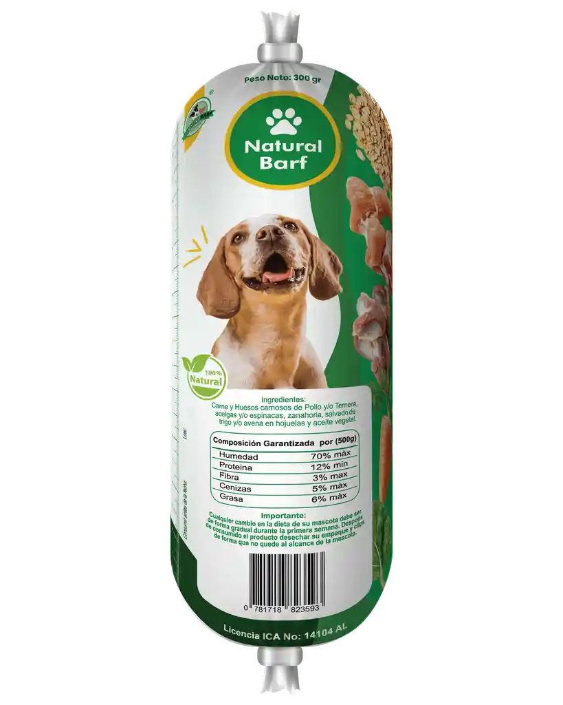 ¿Quieres ofrecerle a tu perro una alimentación más natural, fresca y consciente? Descubre Natural BARF, elaborado en Colombia con ingredientes cuidadosamente seleccionados para aportar nutrición real en cada porción. Natural BARF está desarrollado a partir de proteínas de origen animal, huesos carnosos tiernos, vegetales y otros ingredientes seleccionados, integrados bajo procesos que priorizan la frescura y el control en cada etapa de producción. Es una alternativa pensada para quienes buscan una dieta balanceada, alineada con un estilo de vida responsable y enfocado en el bienestar integral de su mascota.