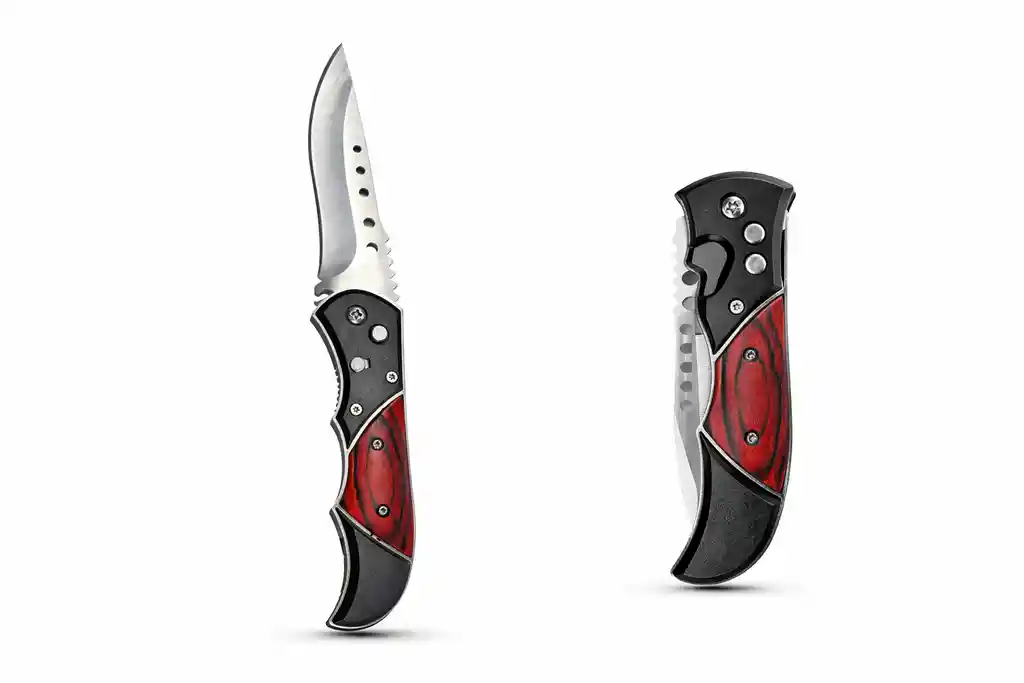 Hoja con filo liso y dentado Diseño plegable compacto Acabado negro mate clip para bolsillo