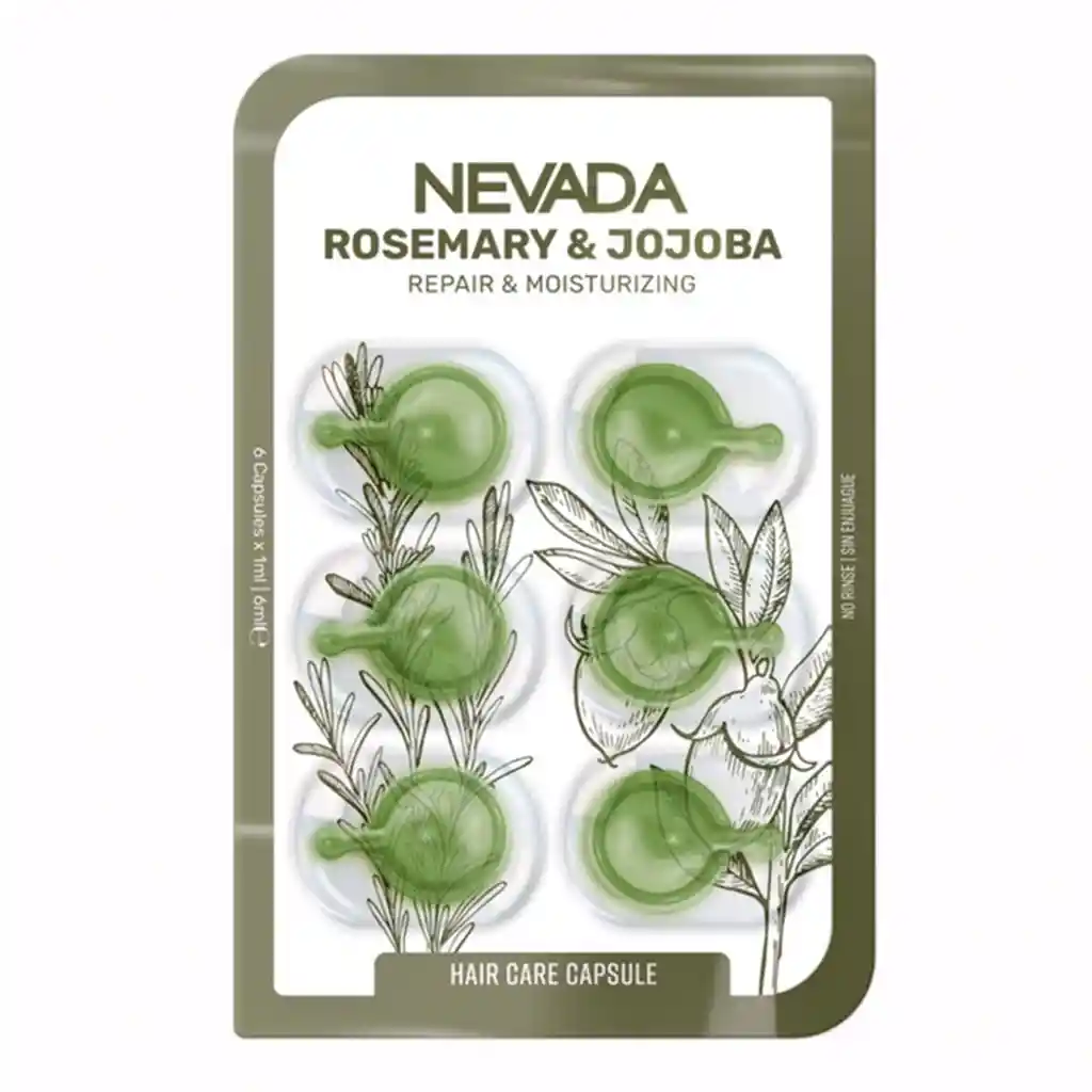 Las Nevada Cápsulas Romero & Jojoba son un tratamiento capilar natural diseñado para reparar, hidratar y revitalizar el cabello desde la raíz. Su fórmula con aceites de romero y jojoba fortalece el folículo capilar, estimula el crecimiento y controla la caída. Aporta suavidad, brillo y elasticidad, dejando el cabello manejable y con un aspecto saludable. Perfectas para cabellos secos, dañados o quebradizos, estas cápsulas nutren profundamente y ayudan a mantener un cuero cabelludo equilibrado, promoviendo una melena más fuerte, hidratada y llena de vida.