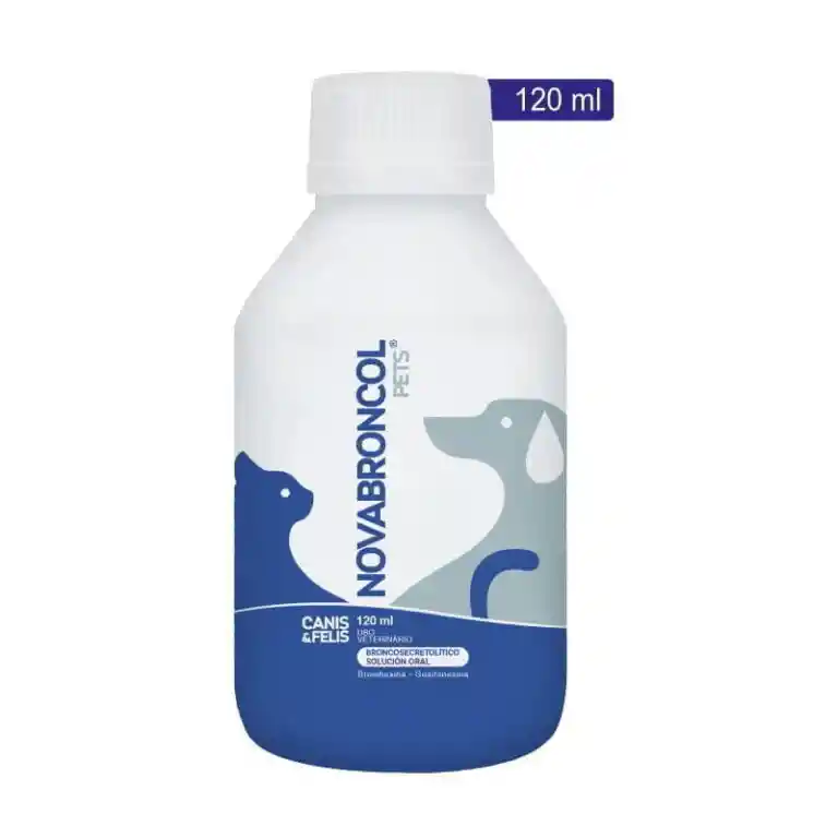 Novabroncol es un medicamento veterinario diseñado para actuar como expectorante y mucolítico, ayudando a aliviar las afecciones broncopulmonares obstructivas en perros, gatos y otros animales. Su fórmula permite facilitar la eliminación de secreciones en condiciones respiratorias crónicas o agudas y es efectiva como complemento de terapias antimicrobianas. Facilita la expectoración de las secreciones bronquiales Mejora la función respiratoria al actuar como mucolítico Ayuda en el tratamiento de diversas afecciones respiratorias Puede utilizarse como coadyuvante en terapias antimicrobianas