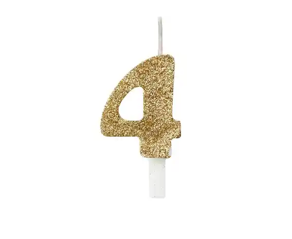 Vela Mágica en Forma de Número 4 Con Superficie Dorada.