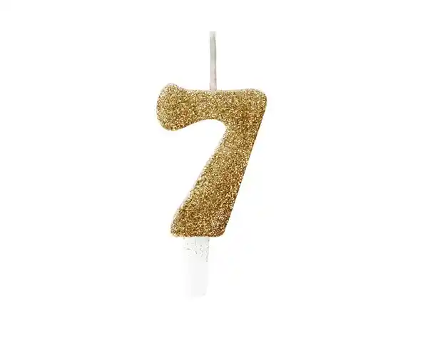 Vela Mágica en Forma de Número 7 Con Superficie Dorada.