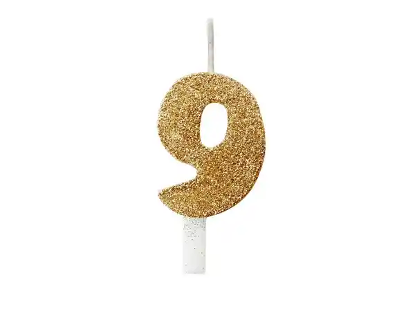 Vela Mágica en Forma de Número 9 Con Superficie Dorada.