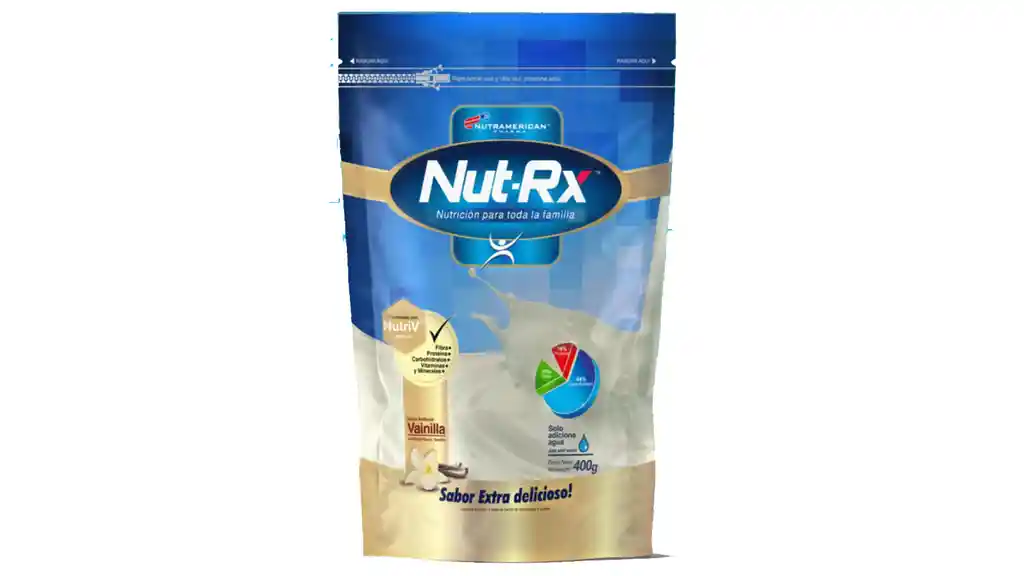 Nut-Rx contiene vitaminas y minerales, así como fibra dietária con múltiples beneficios a nivel digestivo.Nut Rx es la fórmula nutricional avanzada que proporciona todos los nutrientes requeridos para una alimentación sana, completa y equilibrada. Mezcle 1 ½ medidas de Nut Rx en 250ml de agua o adicione a su bebida favorita; puede ser mezclado con otros líquidos como leche o jugos. Consuma una o mas veces al día. Whey Protein: Aislado de suero de leche La proteína de suero de leche (también llamada «whey protein» según su nombre en inglés o proteína lactosérica) es un producto compuesto principalmente por proteínas globulares de alto valor biológico extraídas del suero de leche, un lácteo líquido resultante como subproducto durante la elaboración de algunos quesos. Es rica en aminoácidos esenciales necesarios para la construcción y el mantenimiento de la masa muscular. Ácido pantoténico El ácido pantoténico (también llamado vitamina B5) ayuda a convertir los alimentos que consumimos en la energía que necesitamos. Es importante para muchas funciones en el organismo, especialmente la fabricación y descomposición de las grasas.