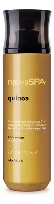 Nativa SPA Body Splash Quinoa, envuelve todo el cuerpo en una deliciosa fragancia; única y explosiva. La composición se basa en notas de quinoa. Es ideal para usar en todo el cuerpo y prolonga la frescura posterior al baño. Además de perfumar, también, ayuda a hidratar la piel durante todo el día.