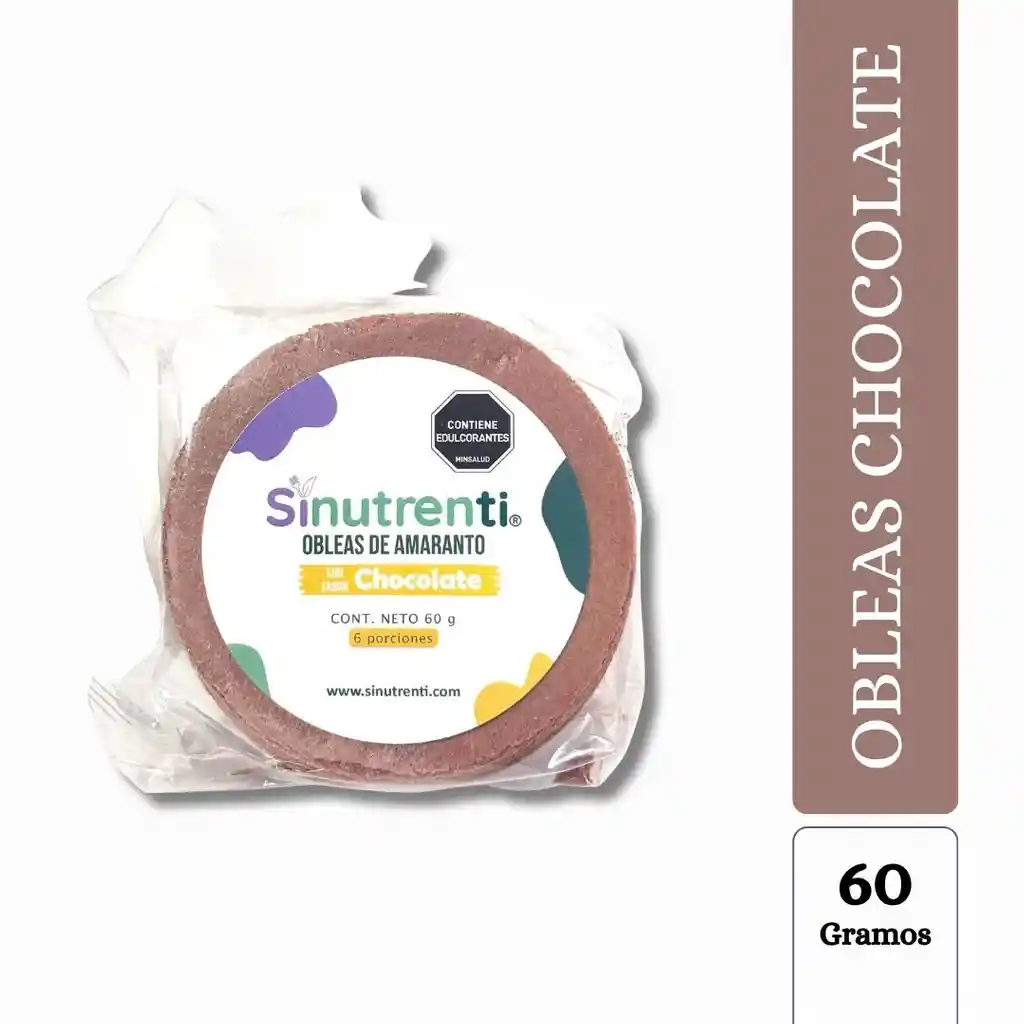 Oblea de amaranto sabor a Chocolate: Harina de Amaranto, extracto natural de estevia, cacao en polvo.