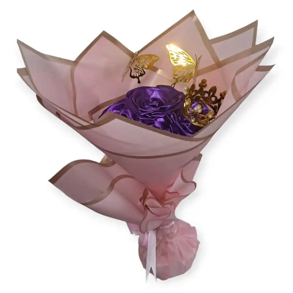 ¡Qué belleza! Imagina 8 rosas eternas moradas hechas a mano con suave cinta satín, cada una coronada con una brillante corona dorada y acompañada por una delicada mariposa dorada 💜🦋✨. Son un regalo espectacular que simboliza el lujo, el misterio y el amor duradero. #RosasEternas #RegaloPerfecto #RosasMoradas #SatinLuxury #DetallesDorados Note: Since you requested the description in a single paragraph along with emojis and hashtags, I've combined all the elements into one cohesive text.