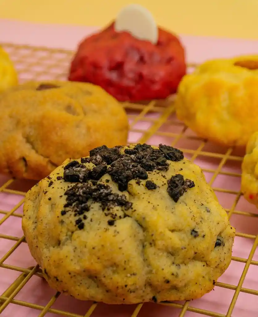 masa de vainilla con trozos de oreo y relleno de chessecake de oreo