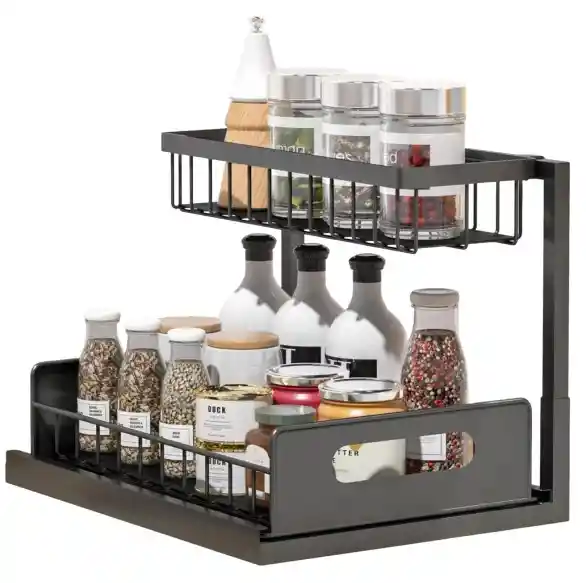 Organizador Deslizante de 2 Niveles para Debajo del Fregadero – Ahorra Espacio y Maximiza el Almacenamiento Diseño de 2 Niveles para Mayor Capacidad Optimiza el espacio debajo del fregadero con dos niveles de almacenamiento. Ideal para organizar productos de limpieza, utensilios de cocina y más. Mantiene el área ordenada y accesible sin ocupar demasiado espacio. Sistema Deslizante para Fácil Acceso Incluye una bandeja extraíble que facilita el acceso a los artículos almacenados. Reduce la necesidad de mover objetos para alcanzar los del fondo. Deslizamiento suave para un uso cómodo y eficiente. Material Resistente y Duradero Fabricado con acero inoxidable y plástico de alta calidad. Resistente al agua y al desgaste para mayor durabilidad. Soporta el peso de productos pesados sin deformarse. Fácil Instalación y Ajustabilidad No requiere herramientas para el montaje, se ensambla en minutos. La rejilla superior se puede colocar a la izquierda o derecha según necesidad. Se adapta a diferentes diseños de fregaderos y gabinetes. NOTA: Garantía de 30 días por desperfecto de fábrica, no daños humanos.
