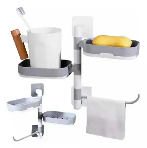 Optimiza el espacio en tu baño con la jabonera de pared. Su diseño de dos niveles permite almacenar jabón, esponjas y otros accesorios de forma práctica y accesible. Con dos niveles de almacenamiento, esta jabonera es ideal para organizar diferentes tipos de jabones, esponjas o productos de baño en un solo lugar. Maximiza el uso del espacio vertical, haciendo que tu baño luzca más ordenado y despejado. Gracias a su sistema de instalación sin necesidad de perforaciones, puedes colocar esta jabonera en cualquier superficie plana, ya sea en la ducha, el lavabo o incluso en la cocina. Puedes colgar una toalla de mano o una toallita en la jabonera de baño, además cuenta con el ángulo de rotación es de 180 grados. El jabón no se empapará y permanecerá siempre seco, porque Después de su uso, el agua se escurrirá en una bandeja que se puede quitar fácilmente para lavar. Funciona como estante y soporte al mismo tiempo, por lo que puedes colocar tus productos de limpieza dental, gel de ducha, diversos cosméticos, etc. Fabricada con materiales de alta calidad y resistentes a la humedad, esta jabonera está diseñada para soportar las condiciones típicas de un baño. Su diseño compacto y vertical es perfecto para baños pequeños o aquellos que necesitan aprovechar al máximo cada rincón sin sacrificar estilo ni funcionalidad.