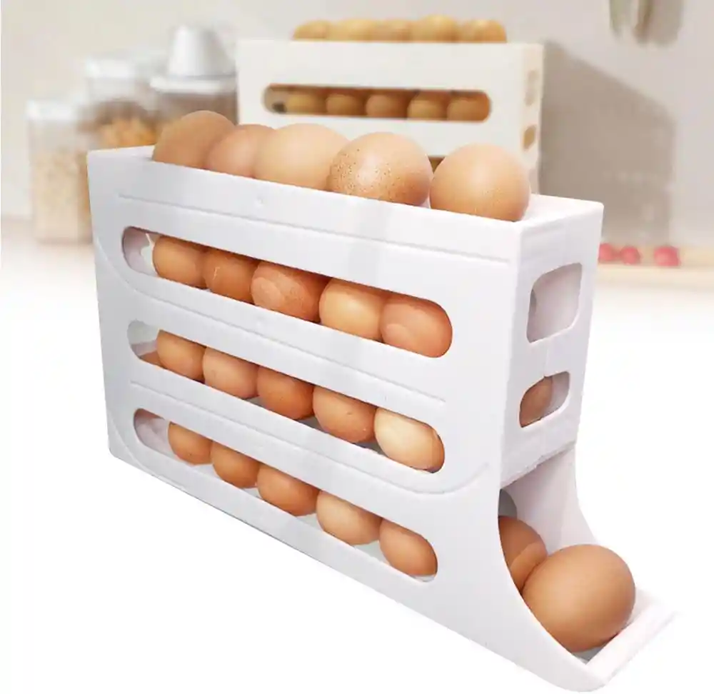 Optimiza el espacio de tu nevera con este Organizador Dispensador de Huevos con sistema de gravedad, diseñado para mantener tus huevos organizados, protegidos y siempre al alcance. Su diseño moderno y compacto permite almacenar varios huevos en niveles, mientras que el sistema deslizante automático hace que el siguiente huevo avance suavemente al retirar uno, sin necesidad de manipular todo el contenedor. 🔹 Sistema Automático por Gravedad Los huevos avanzan automáticamente al retirar uno, facilitando el acceso y evitando desorden. 🔹 Diseño Compacto y Funcional Aprovecha mejor el espacio en la nevera sin ocupar demasiado ancho. 🔹 Material Resistente Fabricado en plástico duradero y fácil de limpiar. 🔹 Organización Inteligente Mantén tus alimentos ordenados y mejora la estética interna de tu refrigerador. Ideal para: ✔ Cocinas organizadas ✔ Hogares modernos ✔ Restaurantes ✔ Minimarkets ✔ Personas que aman el orden