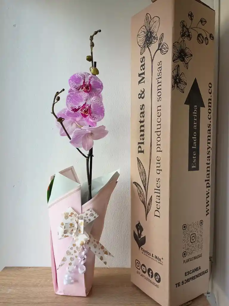 Vibrante y única. La orquídea phalaenopsis fucsia moteada transmite energía y alegría con cada una de sus flores. Perfecta para regalar amor, gratitud o simplemente para llenar de color cualquier ambiente. Se entrega con envoltura decorativa y lazo especial. 📦 Envío en caja de seguridad para conservar su belleza intacta.