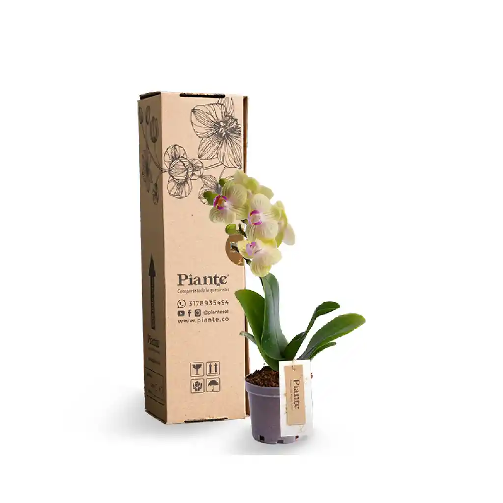 Celebra la belleza suprema con nuestra Orquídea mini premium. Esta orquídea cuenta con un promedio de altura entre 15 y 20 cm, directamente del cultivo, es perfecta para expresar felicitaciones, agradecimientos o dar un toque de armonía al hogar. Su periodo de floración de 1 a 2 meses la primera vez asegura meses de belleza. Incluye caja de transporte especial y nota dedicatoria. Además, cuenta con 1 varas o espigas florales.