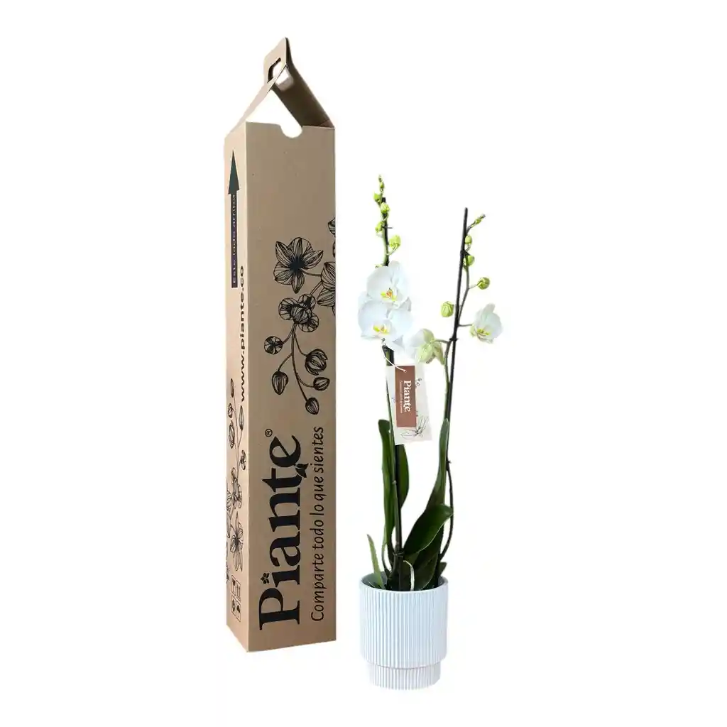 Nuestra Orquídea Supreme es una planta de categoría superior, seleccionada cuidadosamente por su excelente desarrollo, calidad floral y presentación impecable. Es ideal para quienes buscan una opción sofisticada y de alto impacto visual en decoración natural. Se presenta en una matera de cerámica blanca acanalada , un diseño elegante y atemporal que aporta luminosidad, armonía y estilo a cualquier espacio. Su acabado acanalado realza la textura y convierte esta presentación en una pieza decorativa versátil, perfecta para ambientes modernos, clásicos o minimalistas. Esta combinación logra un equilibrio ideal entre naturaleza y diseño, convirtiéndola en una excelente opción para el hogar, la oficina o como regalo especial.
