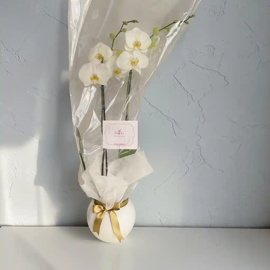 Cuando las palabras no son suficientes . expresalo con orquideas Orquidea de color Blanco con Matera decorativa Si, de 2 espigas , Cuando las palabras no son suficientes . expresalo con orquideas Orquidea de color Blanco con Matera decorativa Si, de 2 espigas-condolencias