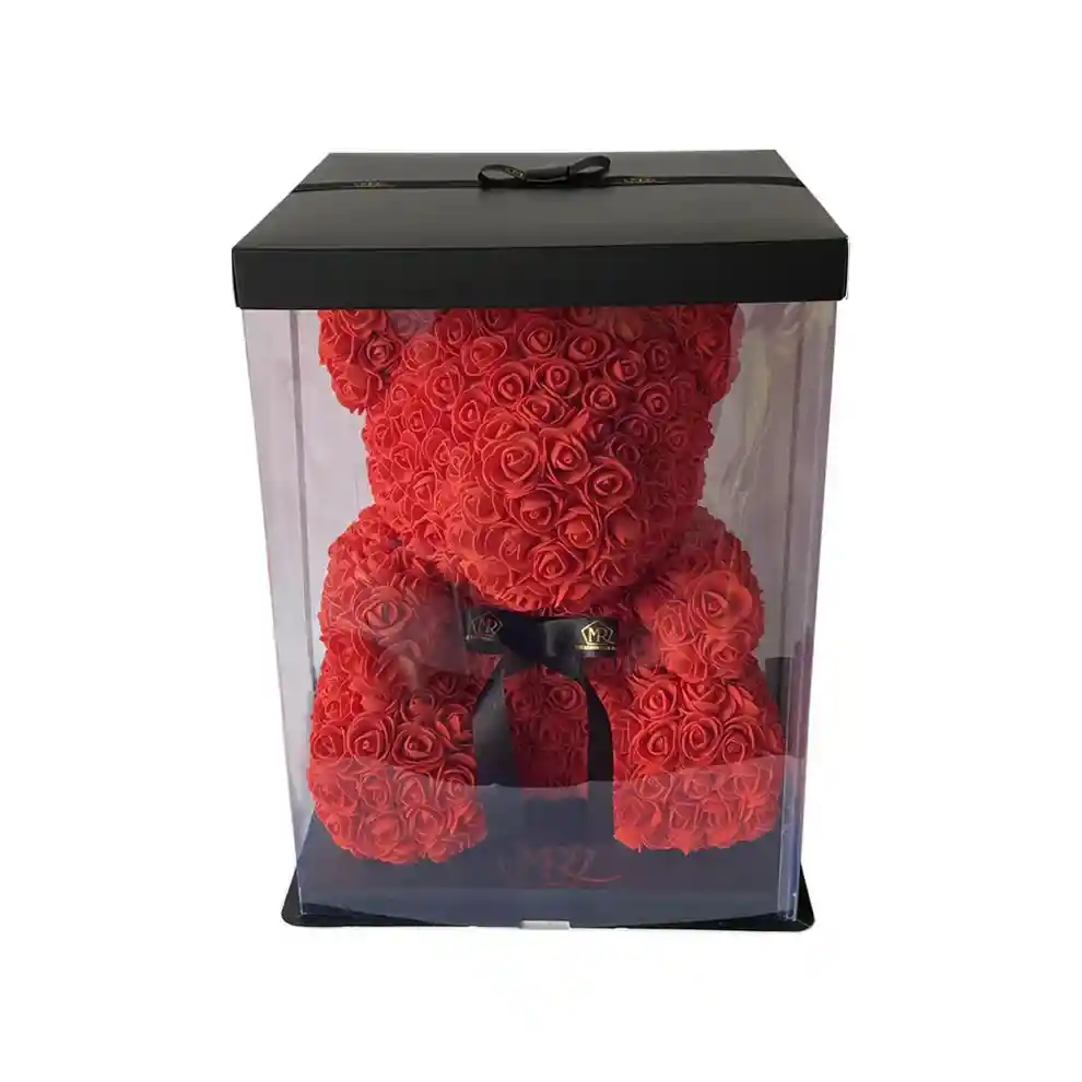 Un encantador oso inmortalizado en material foami de color rojo, representando amor y pasión. Perfecto para un regalo romántico y especial.Nota: El color puede variar dependiendo de la disponibilidad del producto."Mensaje Personalizado" máximo de 30 caracteres (Dejar el mensaje en el chat, los comentarios no se previsualizan para la tienda, por lo que si se dejan allí no podrá ser incluido).