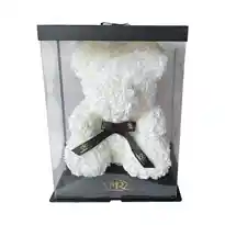 Un hermoso oso inmortalizado en material foami, en color blanco, reflejando pureza y ternura. Un regalo encantador para cualquier ocasión.Nota: El color puede variar dependiendo de la disponibilidad del producto."Mensaje Personalizado" máximo de 30 caracteres (Dejar el mensaje en el chat, los comentarios no se previsualizan para la tienda, por lo que si se dejan allí no podrá ser incluido).