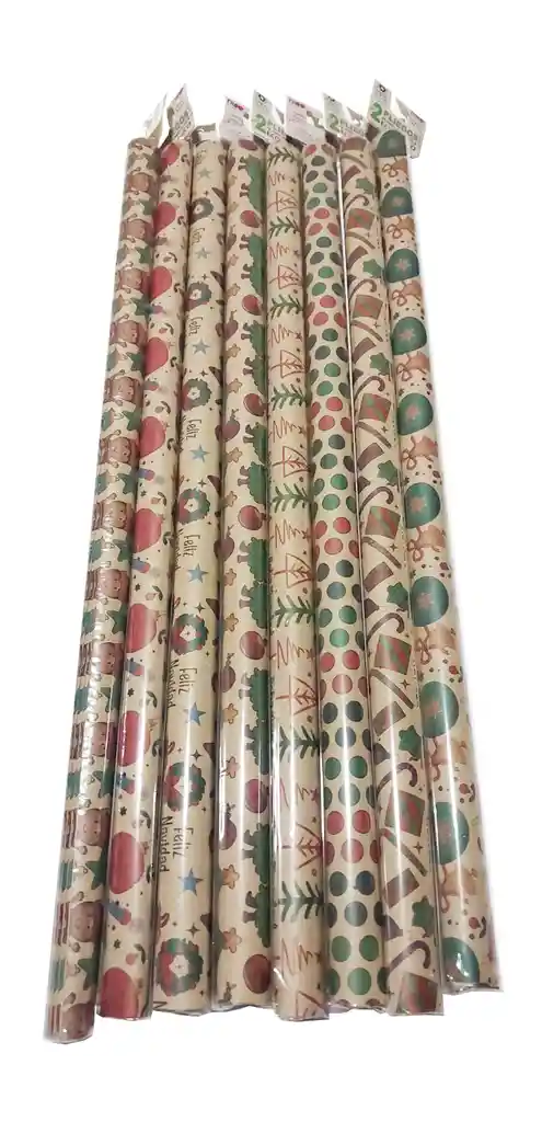 Paquete de 6 rollos de papel regalo marca Nico elaborados en papel ecológico (kraft) cada uno contiene 4 pliegos de 50 x 70 cm Diseños surtidos de navidad