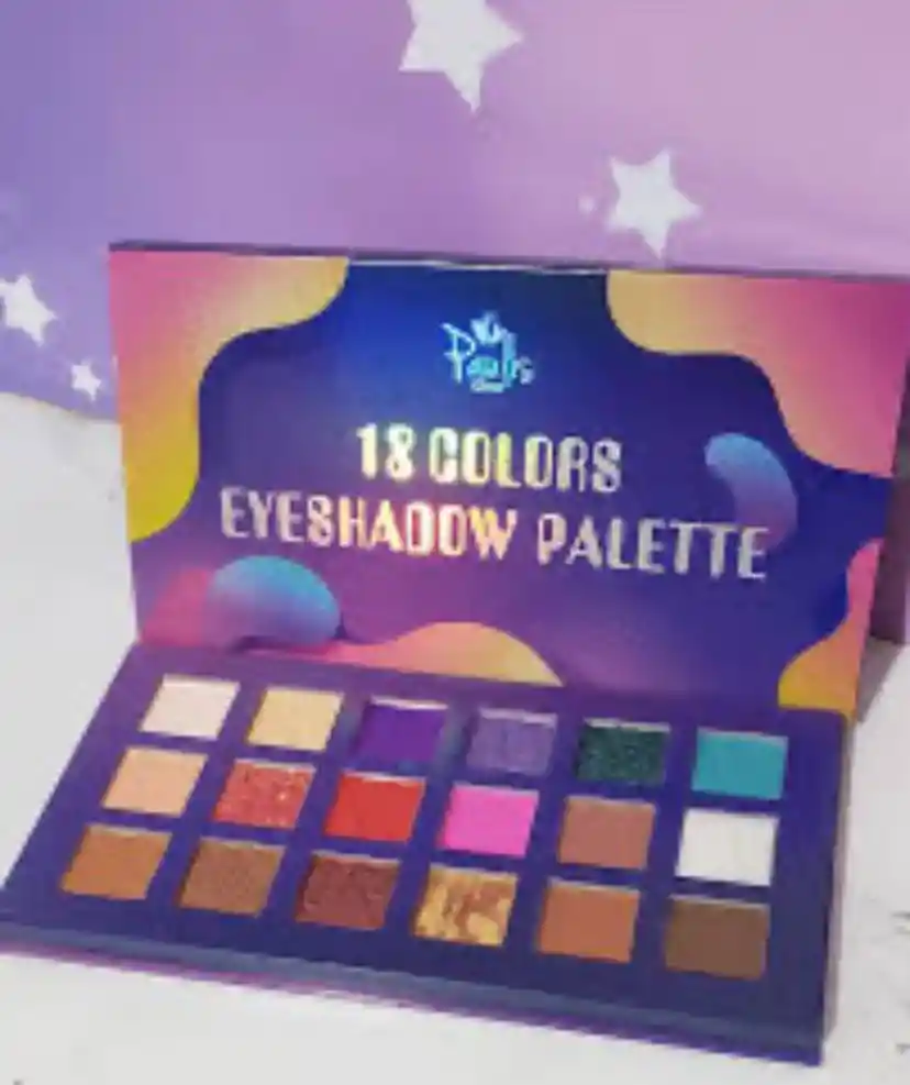 producto de la imagen es una paleta de sombras de ojos de 18 colores de la marca Paulis. La paleta contiene 18 tonos de sombras, incluyendo acabados mate, satinados y con brillo. Se caracteriza por tener una excelente pigmentación y una textura suave. Es un producto de calidad profesional diseñado para crear looks variados. La paleta incluye un espejo y es ideal para llevar en la cosmetiquera.