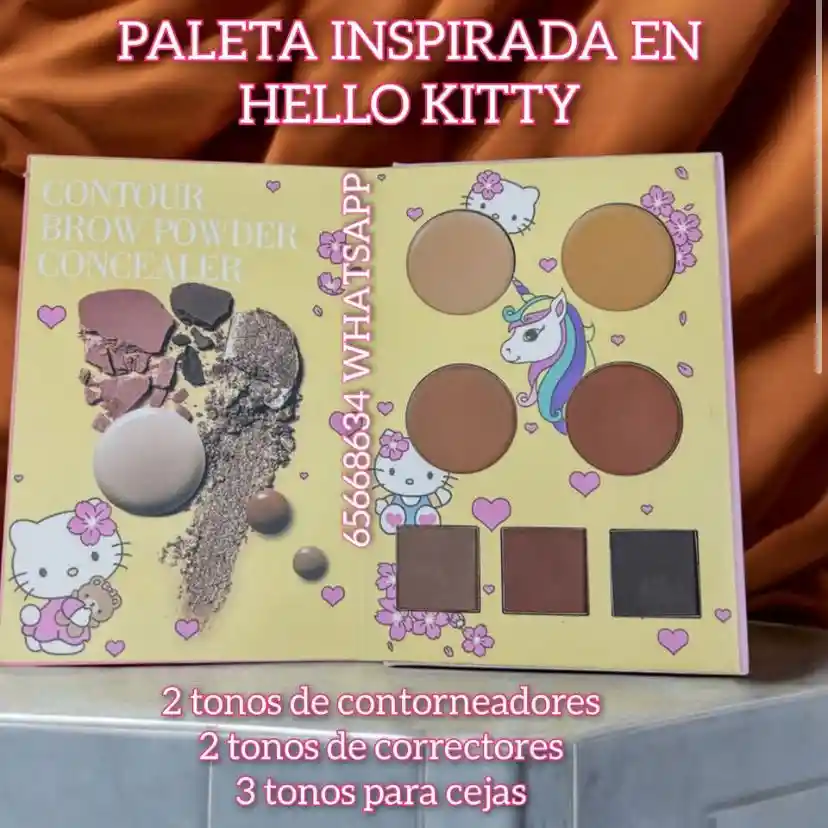 💗 1. Paleta Contour, Brow Powder & Concealer – Inspirada en Hello Kitty • 2 tonos de contorno • 2 tonos de corrector • 3 tonos para cejas Perfecta para definir, corregir e iluminar el rostro con un toque kawaii. 💜 2. Paleta de Sombras – Inspirada en Kuromi • 24 tonos entre mates, satinados y con glitter • Colores versátiles ideales para looks naturales o atrevidos Una paleta llena de energía y rebeldía dulce. 🩷 3. Paleta de Rubores – Inspirada en Stitch y Lotso • 6 tonos de rubor • Acabados satinados y luminosos Da a tus mejillas un toque de color divertido y juvenil. 💛 4. Paleta de Iluminadores – Inspirada en Pompompurin • 6 tonos brillantes y suaves • Ideal para resaltar pómulos, nariz y arco de cupido Deja un acabado radiante con estilo adorable.