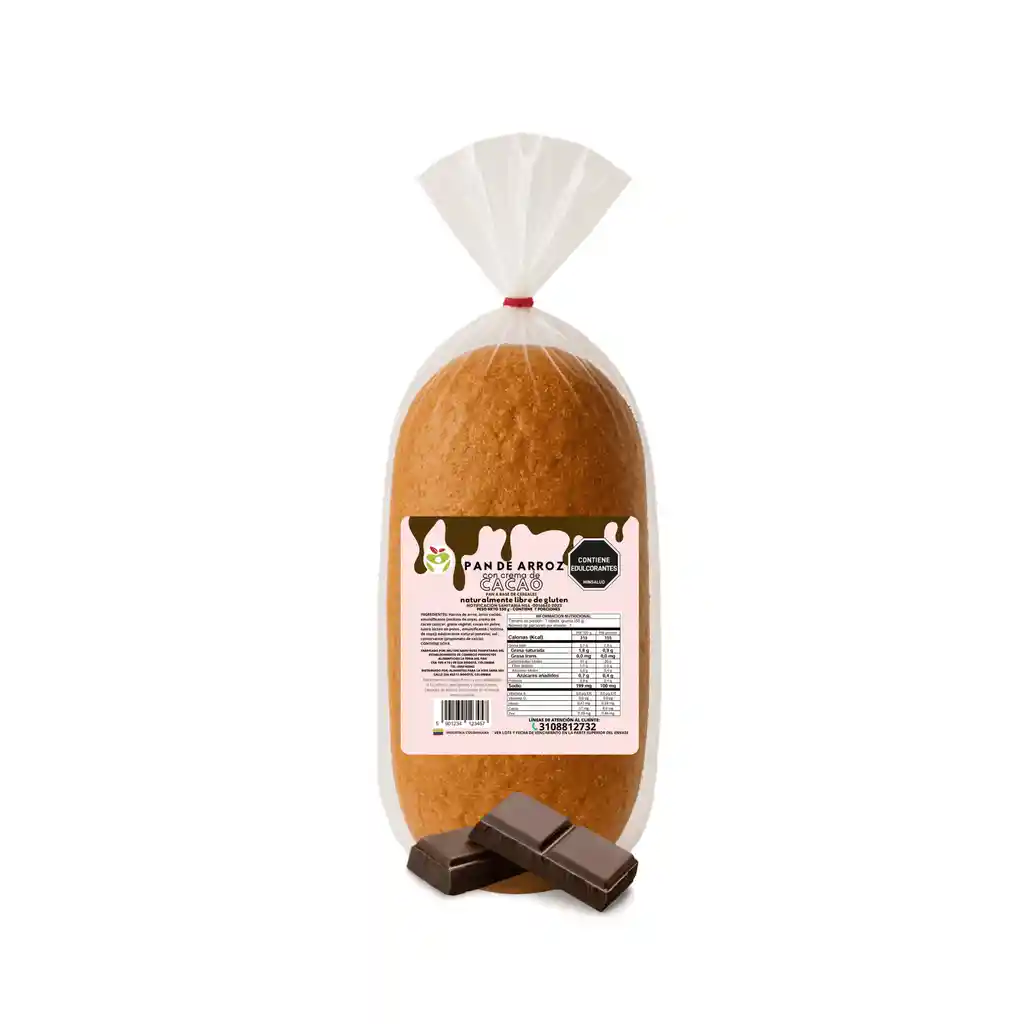 Un pan suave y ligero hecho a base de arroz, perfecto para quienes buscan un snack nutritivo y libre de gluten. Su relleno de crema de cacao aporta el toque dulce ideal sin comprometer tu bienestar. Su textura esponjosa y su sabor equilibrado lo convierten en una opción deliciosa para niños y adultos. Beneficios destacados: • Sin gluten, ideal para personas con celiaquía o intolerancia • Naturalmente ligero gracias a la harina de arroz • Relleno de cacao cremoso y delicioso • Endulzado con estevia • Perfecto como merienda saludable o snack rápido Productos relacionados