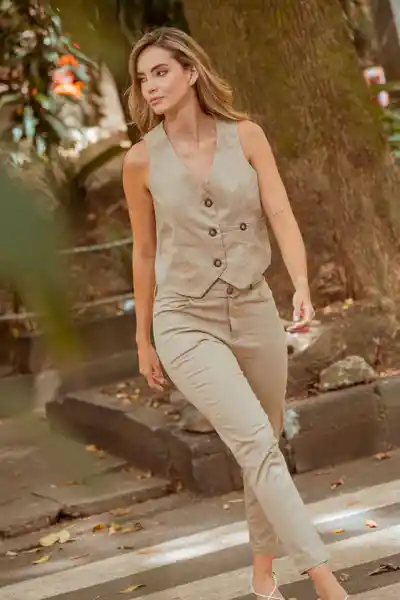 En Tejido Plano Fondo Entero Talle Medio Pretina Con Gancho Sastre Pasadores Alrededor Del Cinturón en la Misma Tela Que Tiene Botón 32 L Bolsillos Funcionales Con Boca Redonda en la Parte Delantera Bota Tubo Uedo de 2 cms Silueta Semi Ajustada.