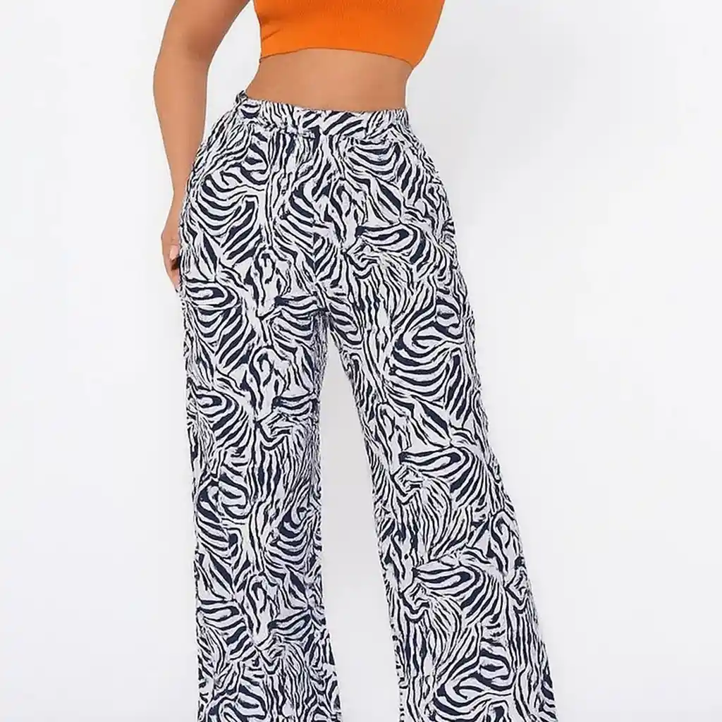 Pantalon Palazzo Bota Ancha Estampado Zebra Azul Talla Unica