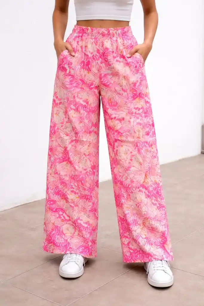 Pantalón Palazzo Cintura Resortada , Estampado Talla UNICA
