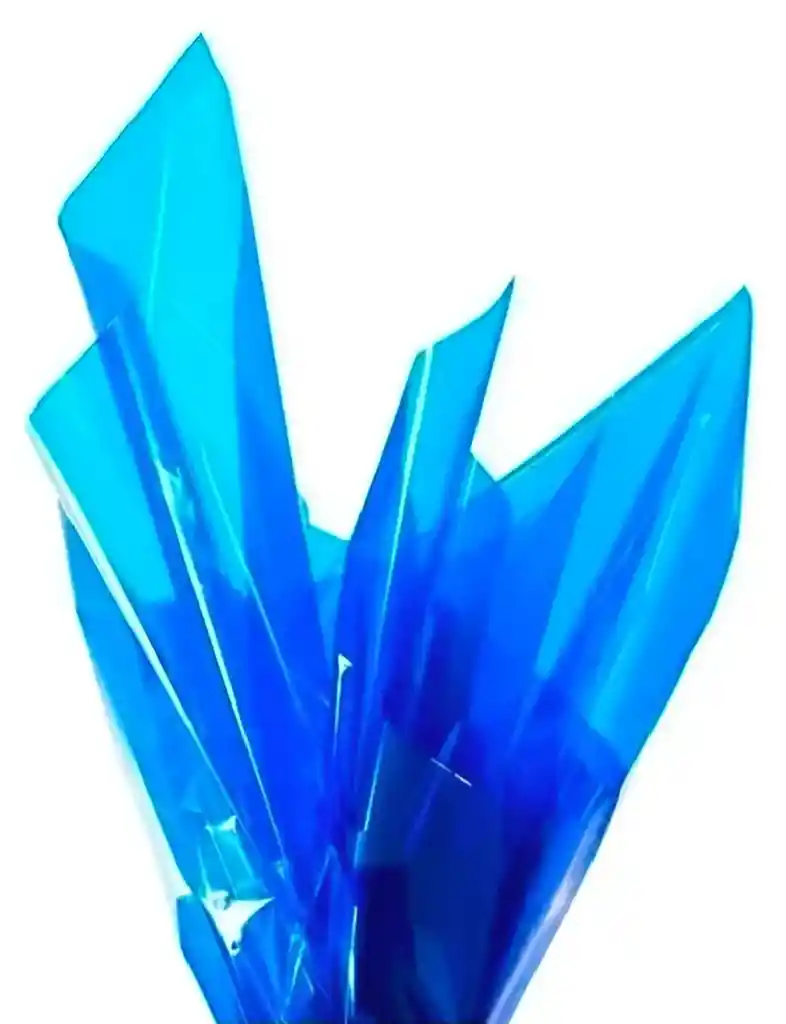 Dale un acabado brillante y profesional a tus regalos o arreglos florales. Se envían 2 pliegos de alta resistencia en un vibrante color azul. Ideal para manualidades, anchetas y envoltorios que necesitan un toque de color transparente.