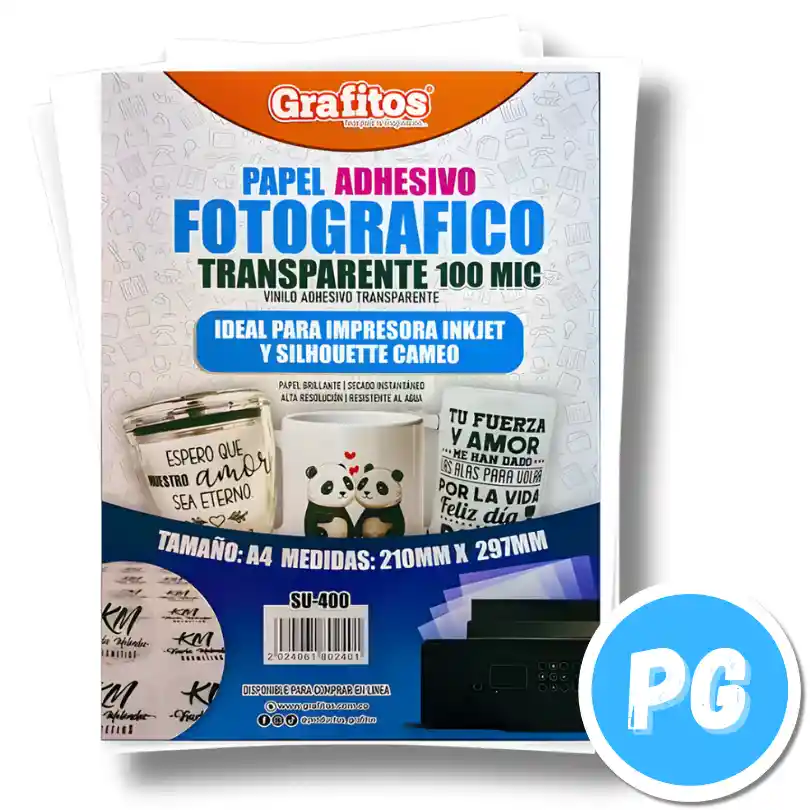 Paquete Papel Adhesivo Fotografico Grafitos x20 Unds A4 100 Micras