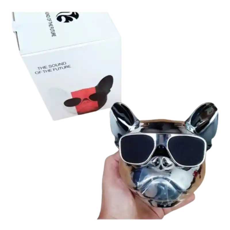 Parlante Bluetooth Cabeza De Perro Bulldog Plateado