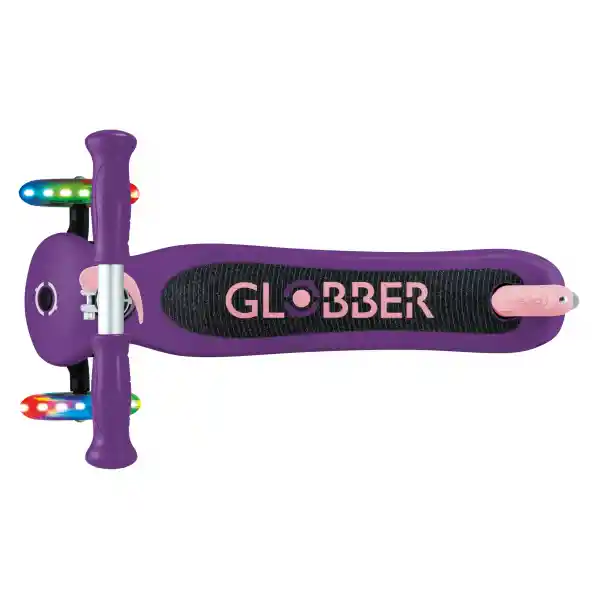 Patineta infantil recomendada para niños entre 3 y 6 años. Cuenta con sistema de bloqueo de dirección patentado, barra ajustable en 3 alturas y freno trasero para mayor seguridad. Las llantas delanteras incluyen luces LED que se activan sin baterías. Fabricada con ruedas de PU y agarres ergonómicos para mayor comodidad. Soporta hasta 50 kg. Medidas aproximadas: largo 56 cm, ancho 28 cm, altura ajustable entre 67.5 y 77.5 cm. Peso del producto: 2.5 kg.