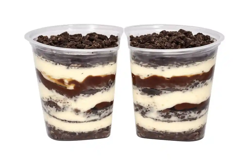 Capas de: crema de la casa, arequipe, crema de maní, chocoramo en trocitos