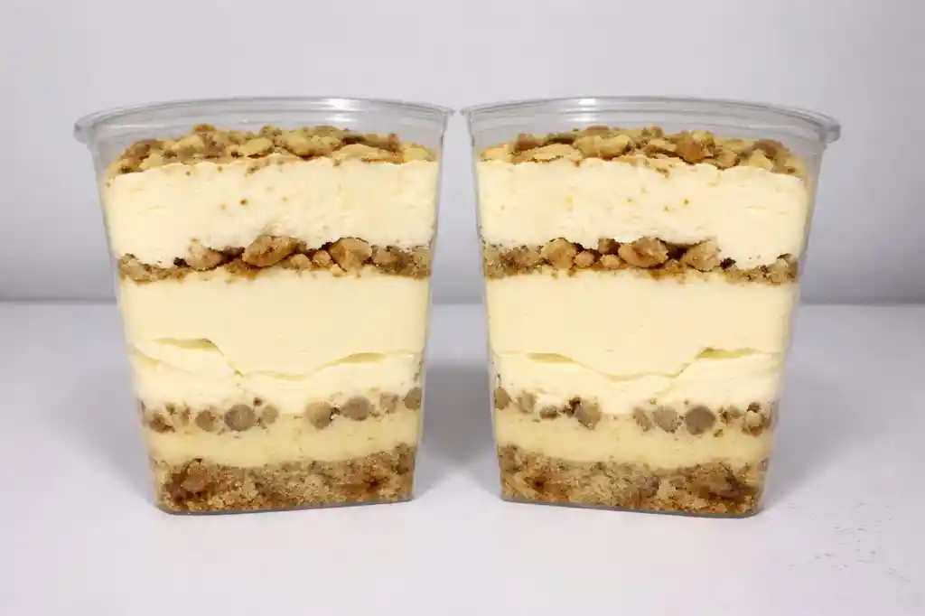 Capa de: crema de la casa, crumble de vainilla y leche klim