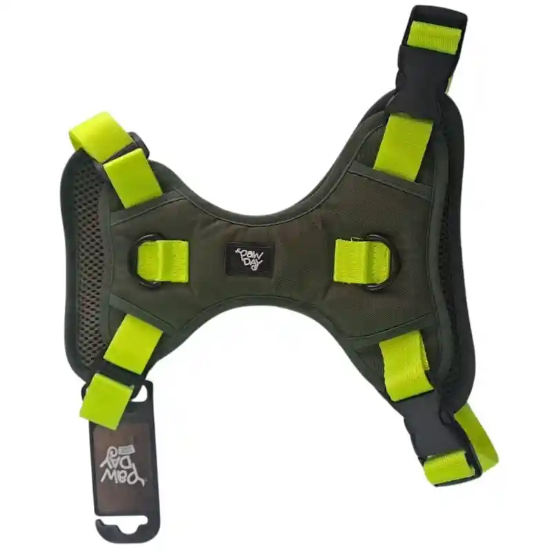 Paw Day - Arnes Essential Verde Militar - Amarillo Neón - L