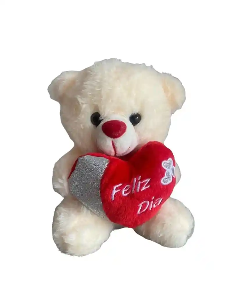 Tierna peluche de oso color beige con nariz roja, que sostiene un corazón rojo con la frase “Feliz Día”. Suave y adorable, ideal para regalar en ocasiones especiales como cumpleaños, aniversarios o para expresar cariño en cualquier momento. El oso puede ser sustituido dependiendo la disponibilidad de color y del producto “Mensaje Personalizado” máximo de 30 caracteres (Dejar el mensaje en el chat, los comentarios no se previsualizan para la tienda por lo que si se dejan allí no podrá ser incluido).