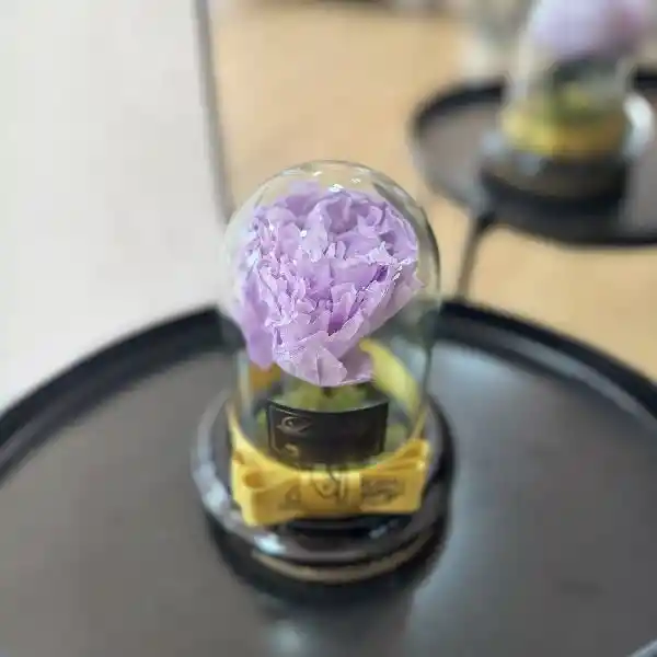 Peonía Preservada en Cúpula de Vidrio – 19 cm Peonía natural preservada en tono lila, presentada en elegante cúpula de vidrio con base decorativa. Conserva su belleza y textura por largo tiempo sin necesidad de agua ni mantenimiento. Ideal como regalo sofisticado o detalle decorativo para interiores. ✨ Sin agua · Larga duración · Uso interior