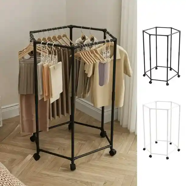 Material: Estructura de tubos metálicos. Diámetro del tubo: Los tubos tienen un diámetro de 16 mm. Movilidad: Equipado con ruedas para facilitar su desplazamiento. Diseño: Cuenta con múltiples niveles o secciones para colgar prendas y estantes para otros artículos. Uso: Ideal para uso doméstico en dormitorios, vestidores o para exhibición en tiendas.