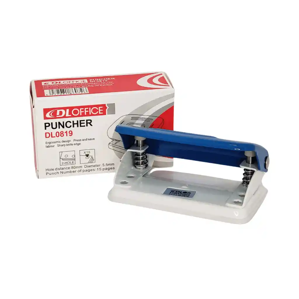 Perforadora Pointer de 2 huecos, capacidad máxima de 8 hojas, 8 cm entre orificios y 6 mm de diámetro. Precisión y durabilidad para oficina o estudio.