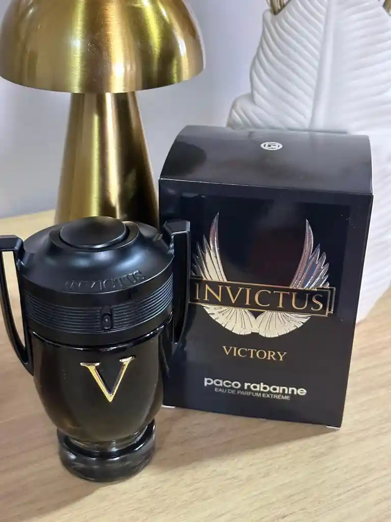 Invictus Victory de Rabanne es una fragancia de la familia olfativa Oriental para Hombres. Invictus Victory se lanzó en 2021. Las Notas de Salida son pimienta rosa y limón (lima ácida); las Notas de Corazón son incienso de olíbano (franquincienso) y lavanda; las Notas de Fondo son vainilla, haba tonka y ámbar.