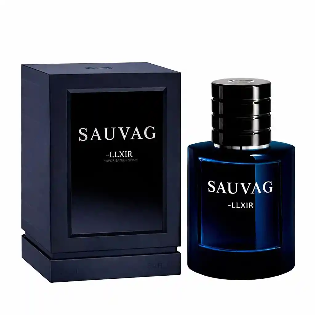 Perfume Sauvag -lixir Replica Premium 1.1 masculina intensa y sofisticada, con un carácter profundo y elegante. Se presenta en un frasco de vidrio en tono azul oscuro con acabado degradado y tapa cilíndrica negra brillante. La caja mantiene un diseño minimalista en tonos oscuros, con el nombre “Sauvag Elixir” al frente. 🔹 Notas frescas y especiadas en la salida. 🔹 Corazón aromático con matices cálidos. 🔹 Fondo amaderado, profundo y ligeramente dulce. Es un perfume de larga duración, ideal para la noche o climas frescos, proyectando una imagen elegante y moderna.
