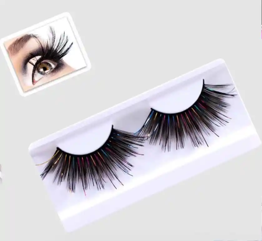Pestañas decoradas con brillo, ideales para maquillaje de fantasía, fiestas o shows.