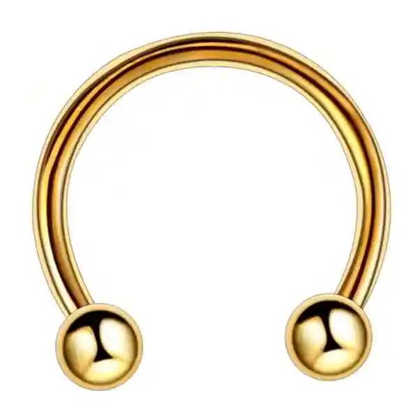 PIERCING HERRADURA DORADA Material: Acero quirúrgico inoxidable 316L (Hipoalergénico). Color: DORADO Medidas: 8mm Uso Ideal: septum, oreja o labio.