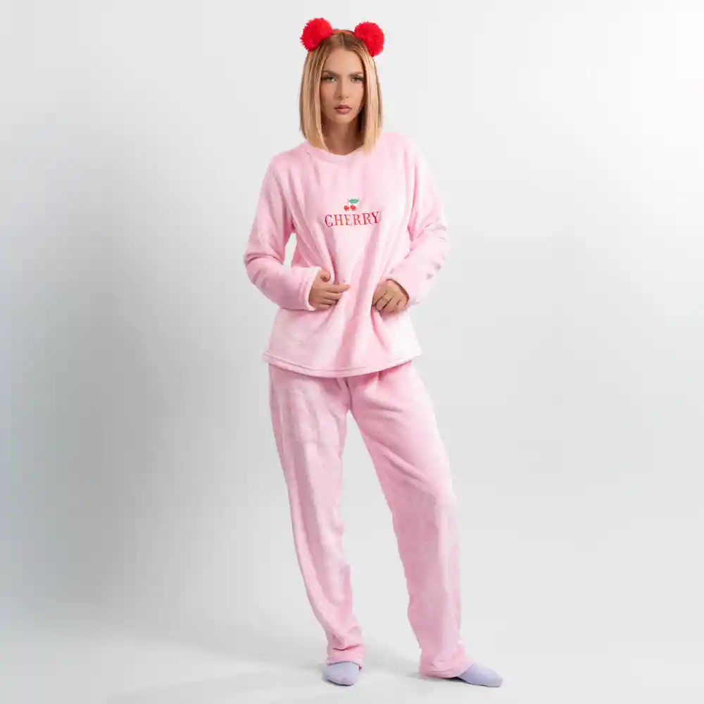 Pijama Térmica Bordada De Cherry. Talla M Rosado