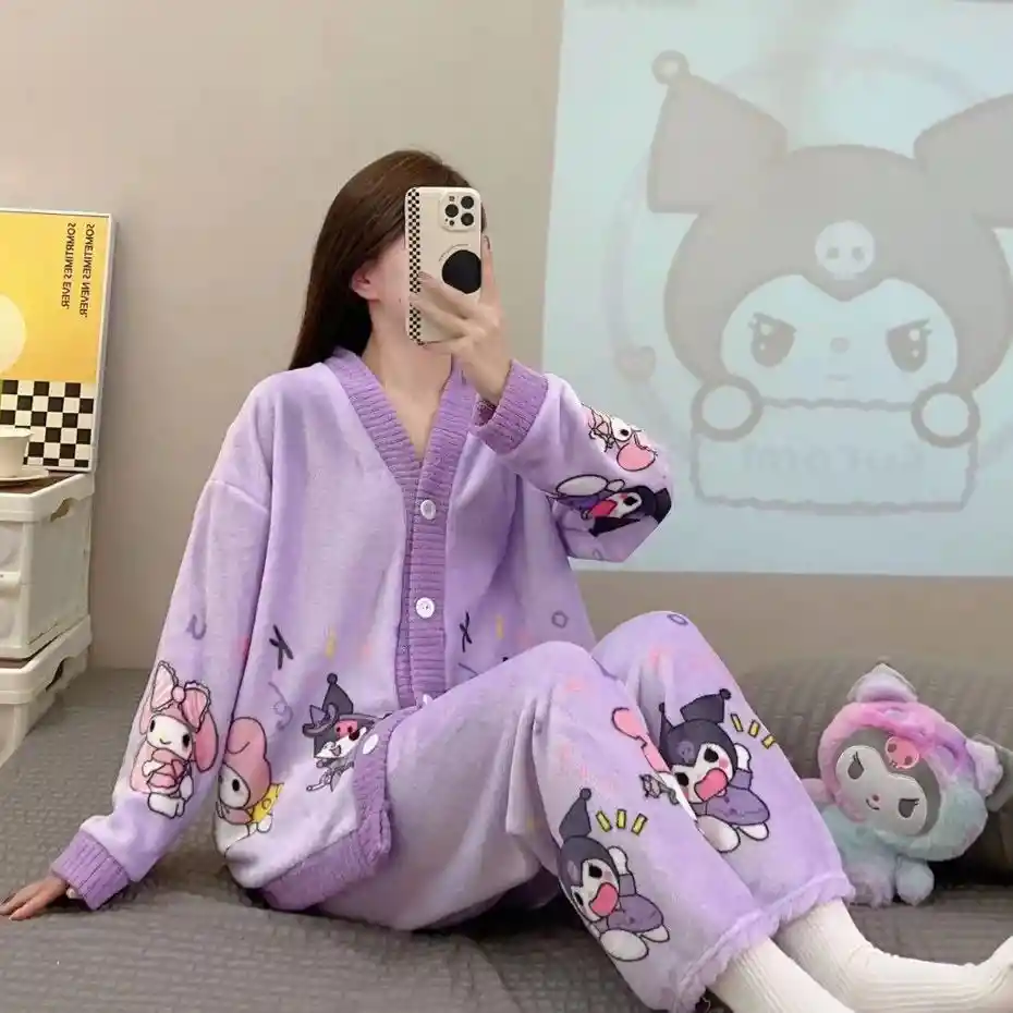 Talla: Única adulto Material: Piel de durazno Incluye: 1x Camiseta manga larga con botón 1x Pantalón *Imagen de referencia. Importante: Debido a la diferencia de pantallas y efecto de la luz, el color real del artículo puede ser ligeramente diferente al color mostrado en las imágenes.