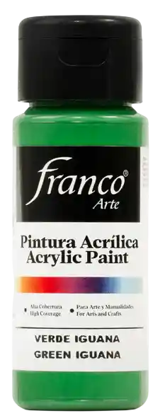 PINTURA ACRÍLICA FRANCO ARTE Descubre una pintura versátil, segura y de alto desempeño. La Pintura Acrílica Franco Arte está elaborada con emulsiones acrílicas base agua, ofreciendo una excelente adherencia, cobertura superior y un acabado profesional. Diseñada para creadores exigentes, esta pintura es ideal tanto para proyectos artísticos como decorativos. Multiusos y versátil: Se adhiere fácilmente a una amplia variedad de superficies como madera, MDF, cartón, yeso, cerámica, papel, icopor y paredes interiores. Es perfecta para manualidades, decoración del hogar, restauración de objetos, señalización, lettering, técnicas mixtas, arte country y mucho más. Su fórmula permite aplicarla con pincel, rodillo, espátula o esponja, lo que la convierte en la aliada ideal para artistas, docentes, estudiantes y amantes del DIY. Fórmula no tóxica: segura para todas las edades, sin sacrificar intensidad de color ni resistencia. Rendimiento y precisión: Cubre más con menos. Su textura permite trazos definidos, mezcla de colores uniforme y una aplicación sin complicaciones.